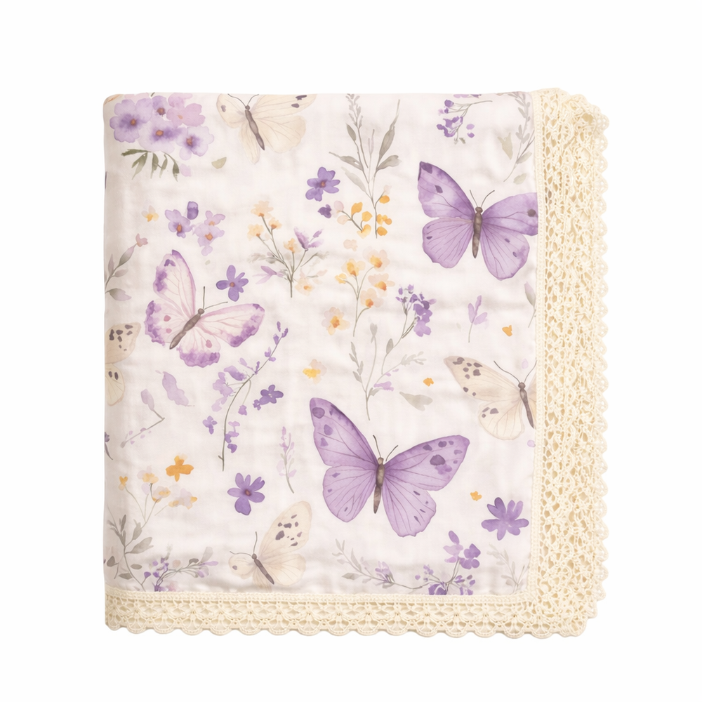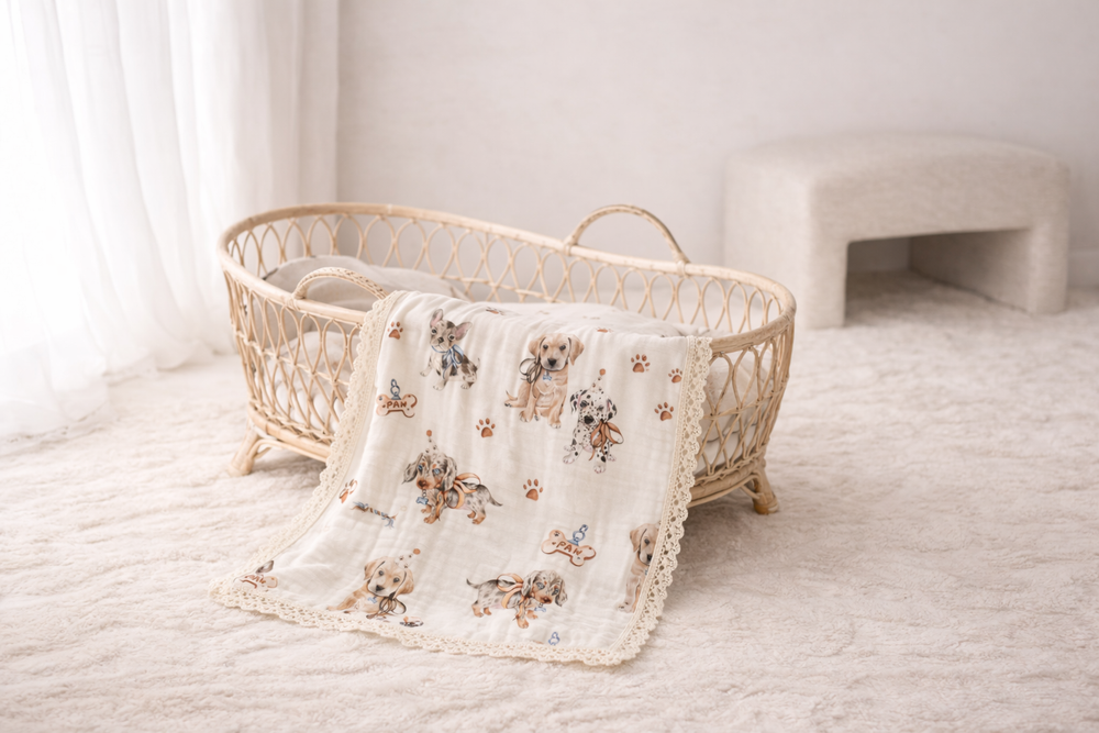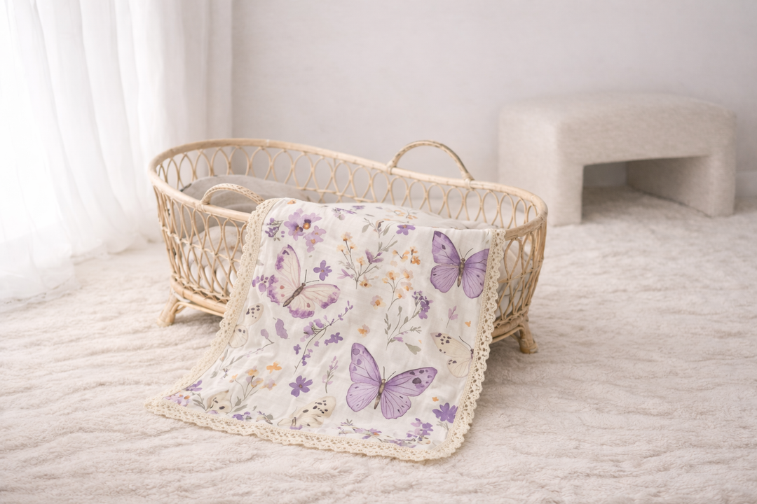 Our muslin blankets are designed to be incredibly versatile. They can be used as a pram blanket, bassinet blanket, tummy time mat, nursing cover, or simply for cuddles at home. Their generous size and breathable design make them a practical everyday essential for both home and outings.